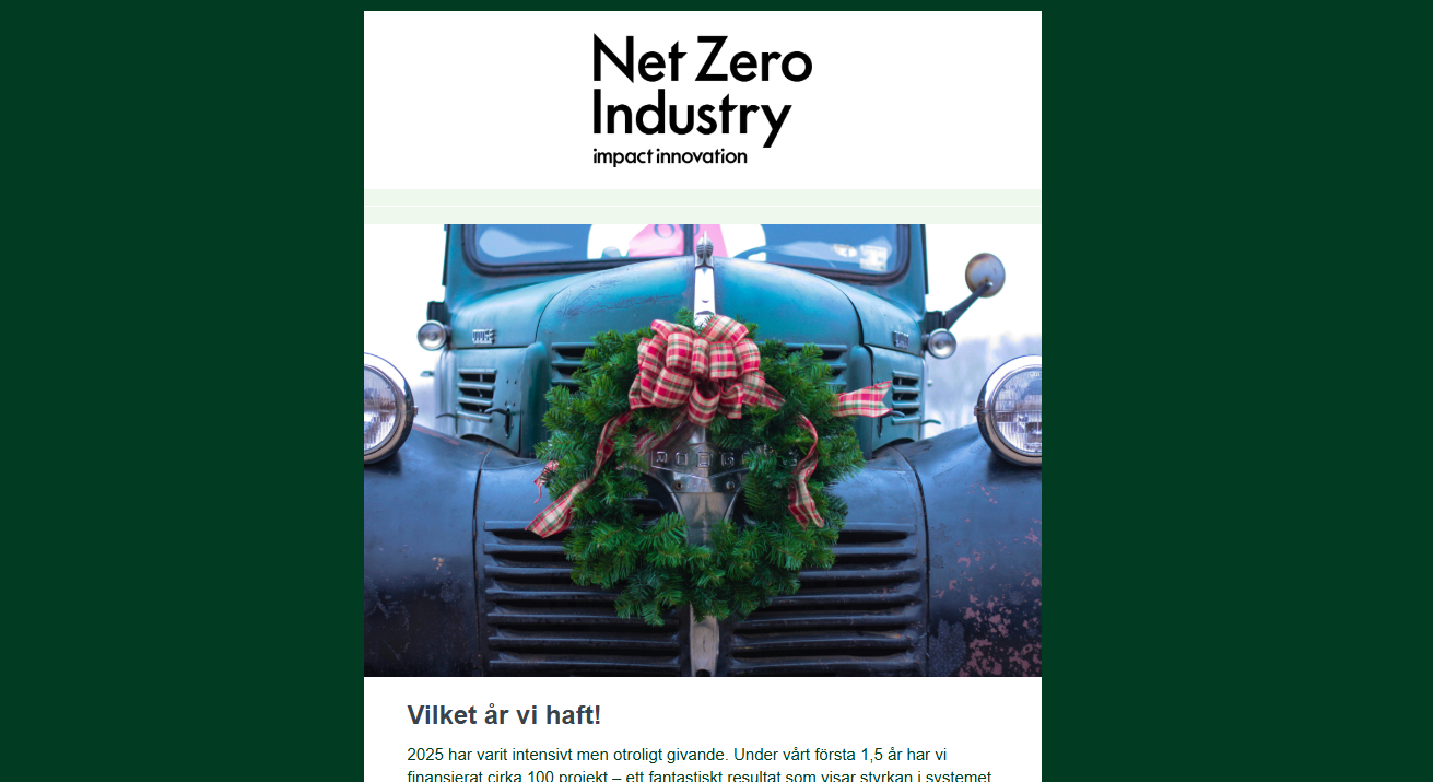 Net Zero Industry is an enabler for the Swedish manufacturing industry, which is why we regularly send out our popular newsletter. Here you will find useful information about what is happening within the programme, relevant calls for proposals and inspiration so that you too can contribute to the transition. We also share articles and other interesting information about our approved projects and, of course, upcoming events!
