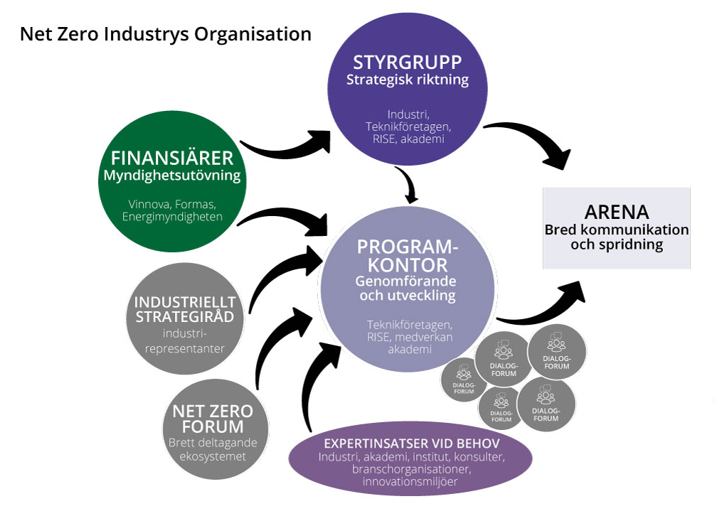 Net Zero Industry’s organisation and activities are based on broad stakeholder collaboration. The programme office is run by Teknikföretagen and RISE, with the participation of academia. The work within the programme is carried out in close collaboration with industry and the manufacturing industry ecosystem.
